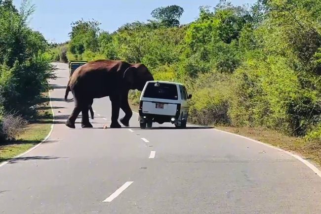 මේ අකාරයට මාර්ගය අසල රැදී සිටි වනඅලියෙකුට ආහාර ලබාදුන් වෑන් රථයකට එම අලියා තවත් ආහාර බලාපොරොත්තුවෙන් පහරදෙන ආකාරය කැමරා කාචයේ මෙලෙස පටිගත වී තිබුණි.