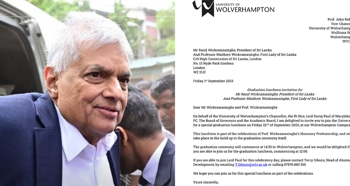 හිටපු ජනාධිපති රනිල් වික්රමසිංහ මහතා විසින් අධිකරණයට ඉදිරිපත් කරන ලදැයි කියන ලන්ඩන් වුල්ෆ් හැම්ප්ටන් විශ්ව විද්යාලයේ උපාධි ප්රදානෝත්සවයේ ආරාධනා පත්රයක් සම්බන්ධයෙන් අපරාධ පරීක්ෂණ දෙපාර්තමේන්තුව (CID) විමර්ශන ආරම්භ කර තිබේ.